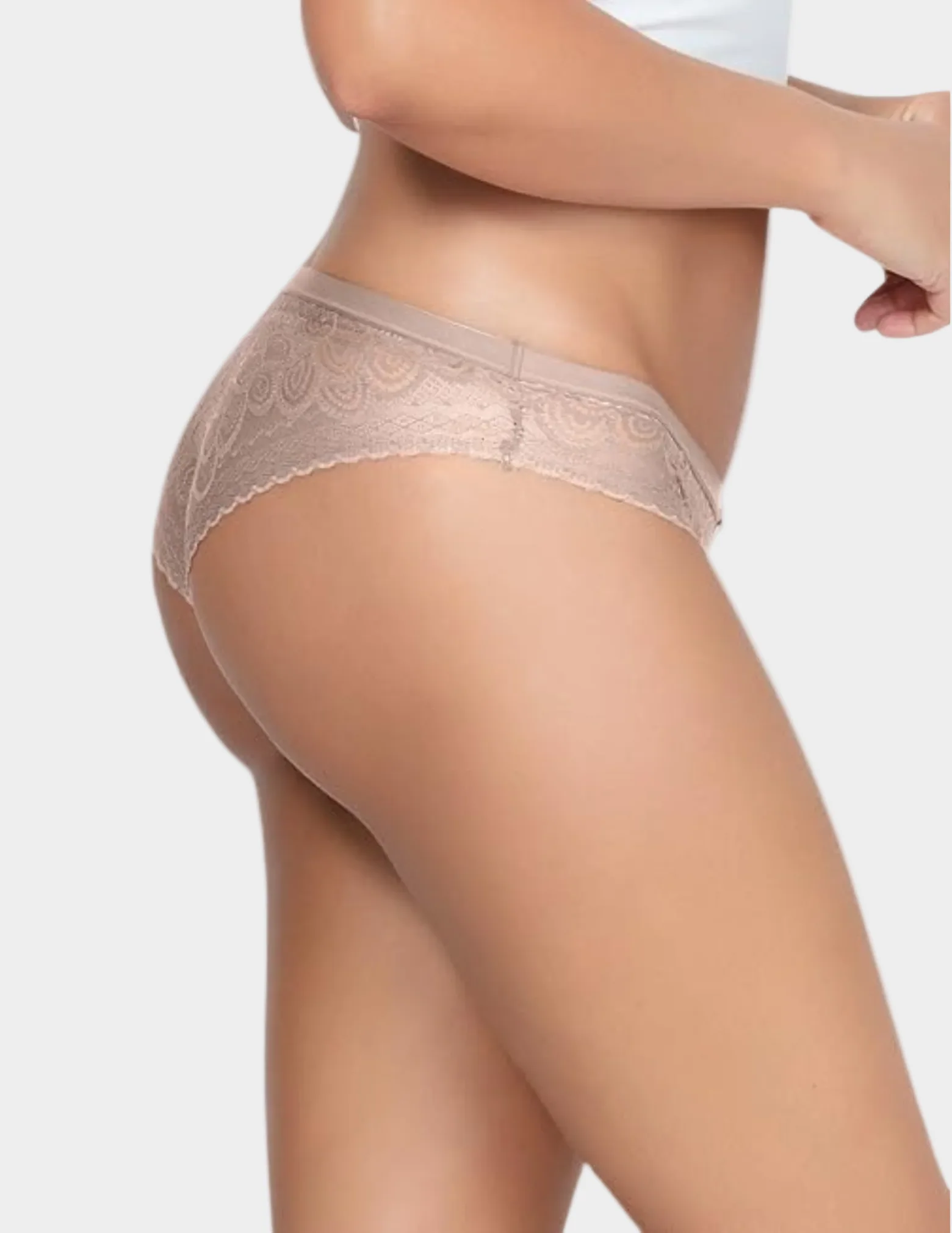 Beautiful sheer stretch lace in Bare and a flirty fit create a stunning silhouette. Designed with glamour in mind.